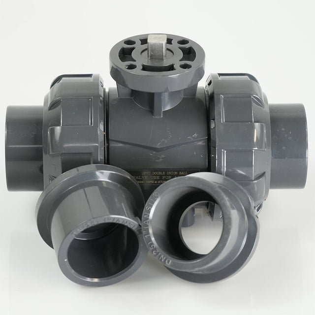 The 1" PVC True Union Ball Valve with ISO Mount is built for high-performance fluid control. Its robust construction and advanced sealing technology make it suitable for demanding applications.