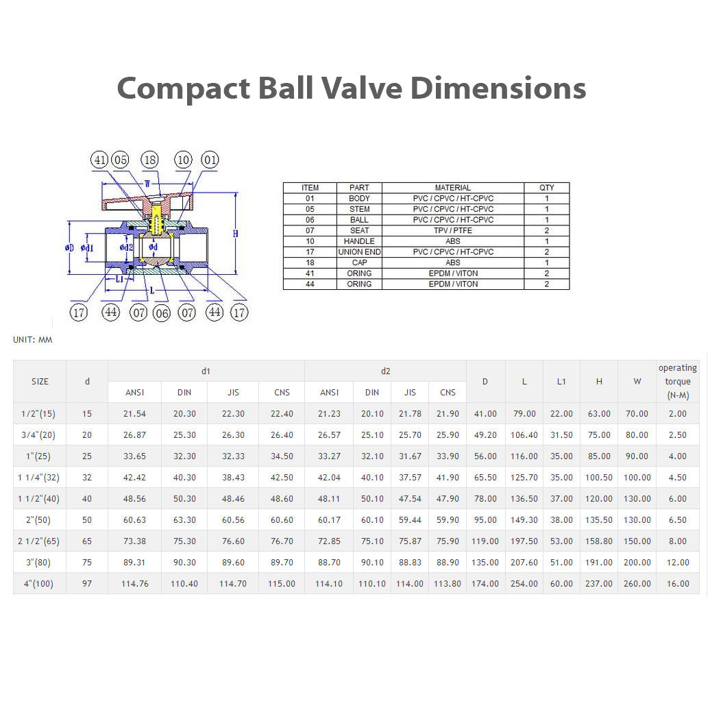 1-1/2" DELUXE PVC Ball Valve is great for commercial and industrial applications. This valve is compact in size and provides a small handle for easy flow management. This PVC valve is made durable for long-term use and non-toxic. Corrosion resistant and lightweight, this valve is a cost effective solution for a tight space.